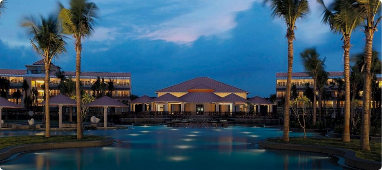 Conceived as Pondicherry by the French and affectionately known as 'Pondy', the city has its conspicuous French connection. Away from the hustle bustle of the metro's, this quiet little town offers the peculiar mustard-yellow colonial heritage buildings, virgin beaches, a medley of cuisines, the quaint spiritual wave and the alluring art. Here, soaked in the whiff of the Bay of Bengal and stationed in the ripples of its own beautiful man-made lake, Ocean Spray grasps the enchantment and the intimacy in its own breath. Bonjour Bonheur Ocean Spray Resort showcases the nature at its best. The Majestic grandeur architecture overlooks the overwhelming swimming pool with the sound of the gushing cascades and the smoldering view of the sky. Interiors reflect the warmth of its aristocratic ambiance. Villas with private swimming pools provide an exclusive composition. One of its kind night club quenches the thirst of the night life birds. The mesmerizing experience of candle light dinner on the boat in the lake is just meant for those special romantic moments. Statuesque trees give the unmistakable view from the esplanade.